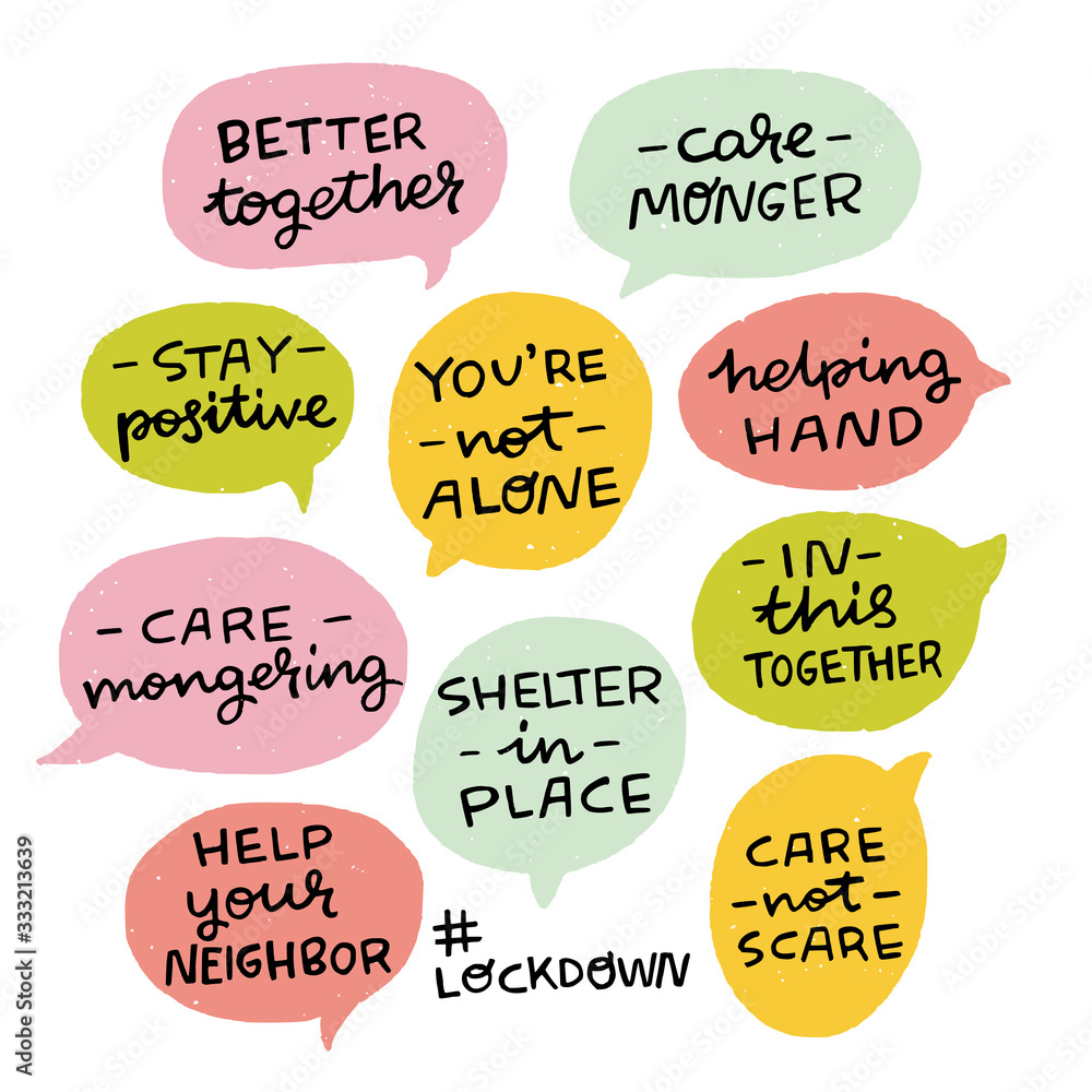 Set Of Hand Lettering Messages For Stay Home Campaign Positive Inscriptions For Covid 19 Epidemic Hashtags In Speech Bubbles Self Isolation Lockdown Phrases For Social Media Stickers Tags Stock Vector Adobe Stock